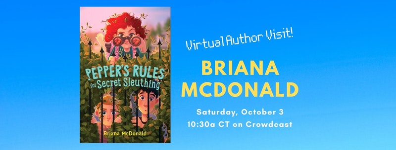 Author Briana McDonald joins Mystery to Me to discuss her DEBUT middle-grade novel, PEPPER’S RULES FOR SECRET SLEUTHING! This is a perfect event for young readers…and detectives!
