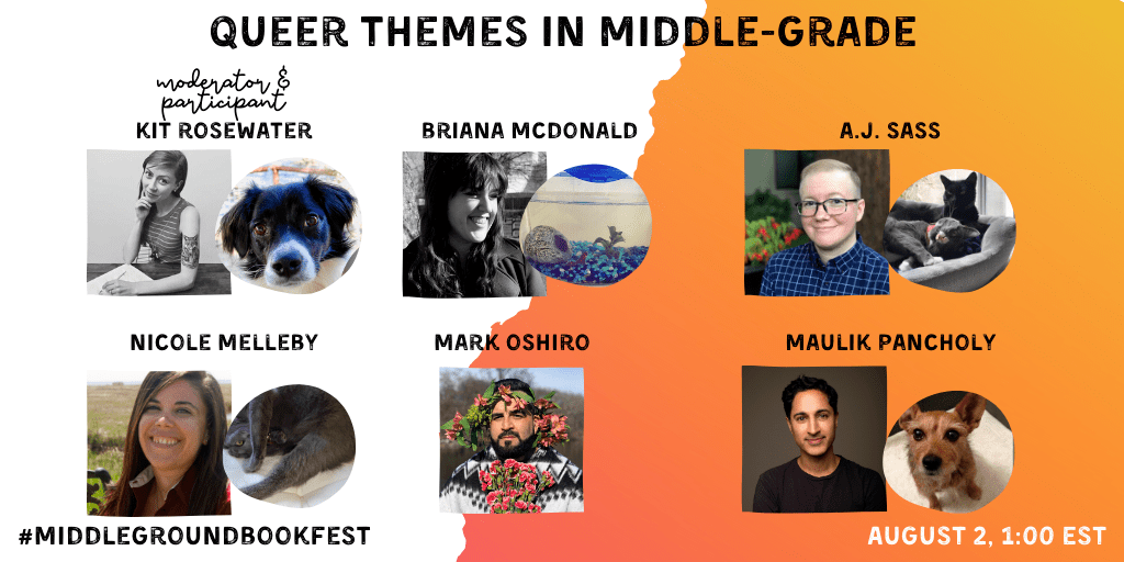 A middle grade panel featuring Kit Rosewater, Briana McDonald, A.J. Sass, Nicole Melleby, Mark Oshiro and Maulik Pancholy. The recording will be available here on YouTube from August 2020 to August 2021.