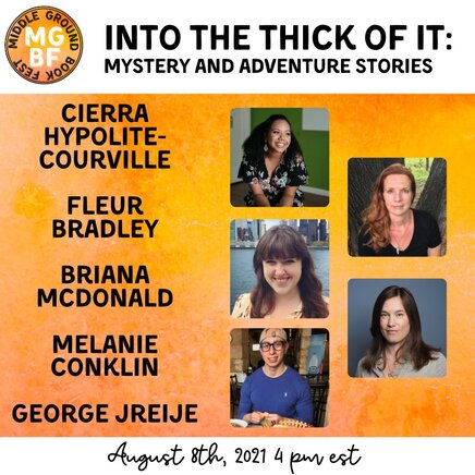 A middle grade panel moderated by educator, Cierra Hypolite-Courville, featuring authors Fleur Bradley, Briana McDonald, Melanie Conklin, and George Jreije.