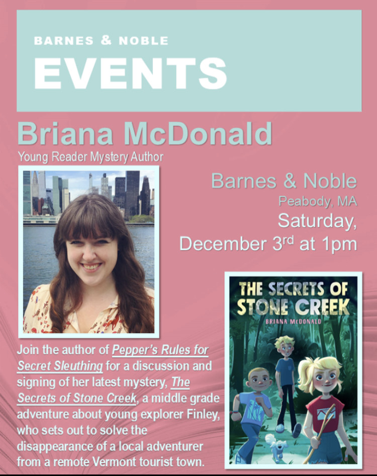 Join me at the Barnes & Noble in Peabody, MA for a reading, event, and signing of my latest middle grade novel, THE SECRETS OF STONE CREEK!